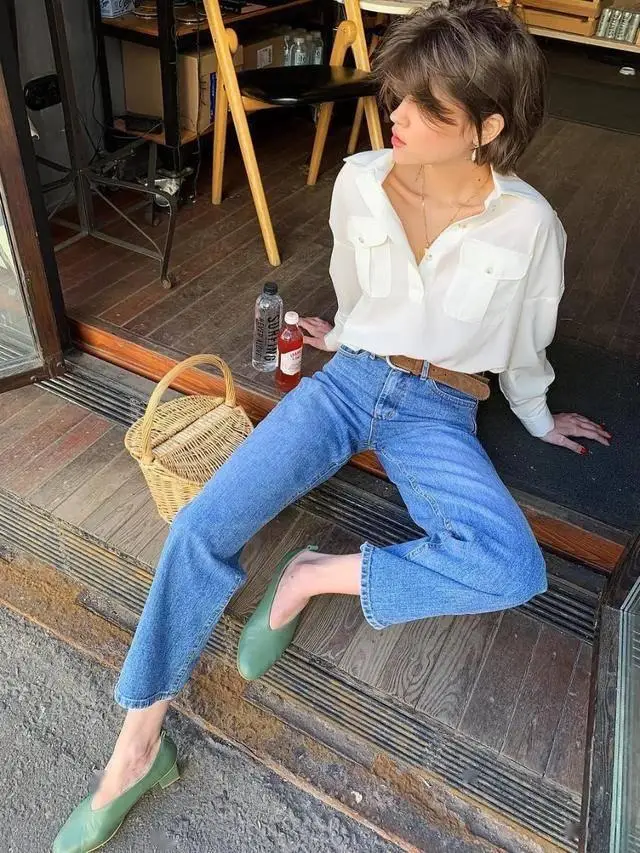 衬衫+九分裤穿搭走红,兼具利落与显高效果