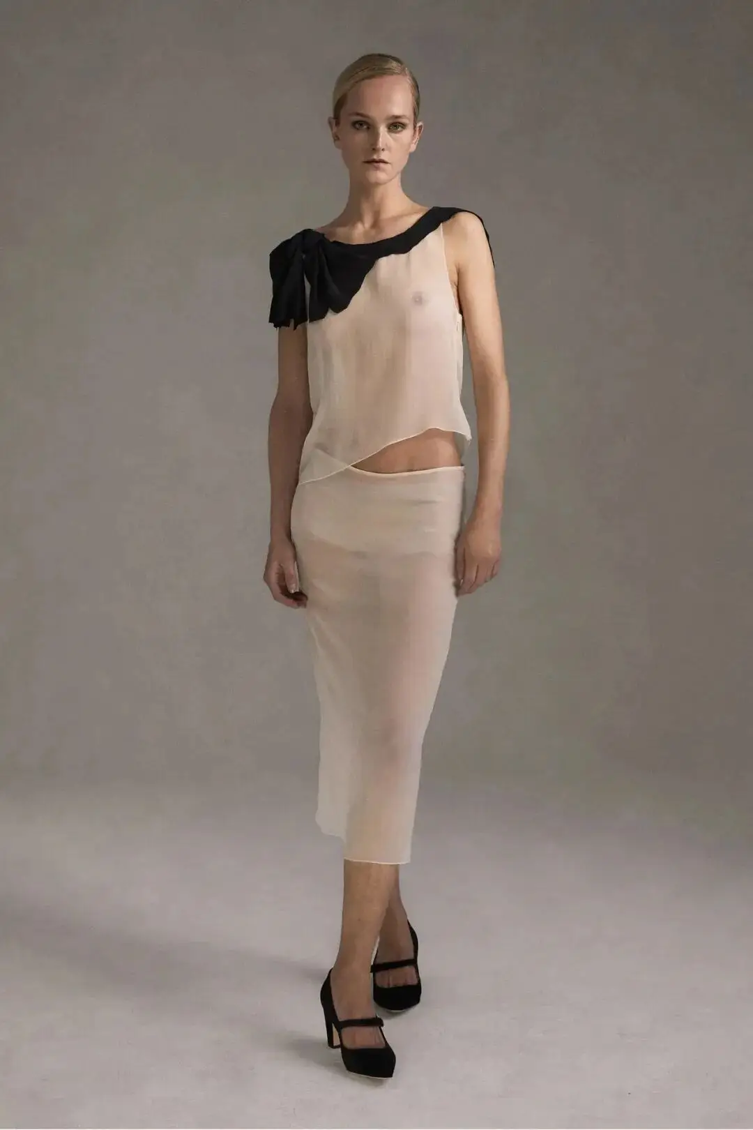 轻柔的印花图案在女性衣橱中崭露头角,荷叶边和蝴蝶结等少女感细节点缀着摩登浪漫造型,成为时尚都市的主流风。