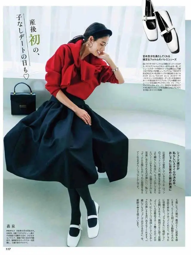 职场穿红色,搭配黑色是再合适不过的,既不会过于跳脱,同时兼具了稳重。红色毛衣叠穿白色T恤,搭配黑色直筒裤,时髦又温柔。
