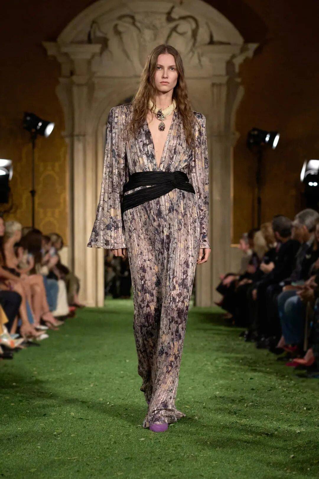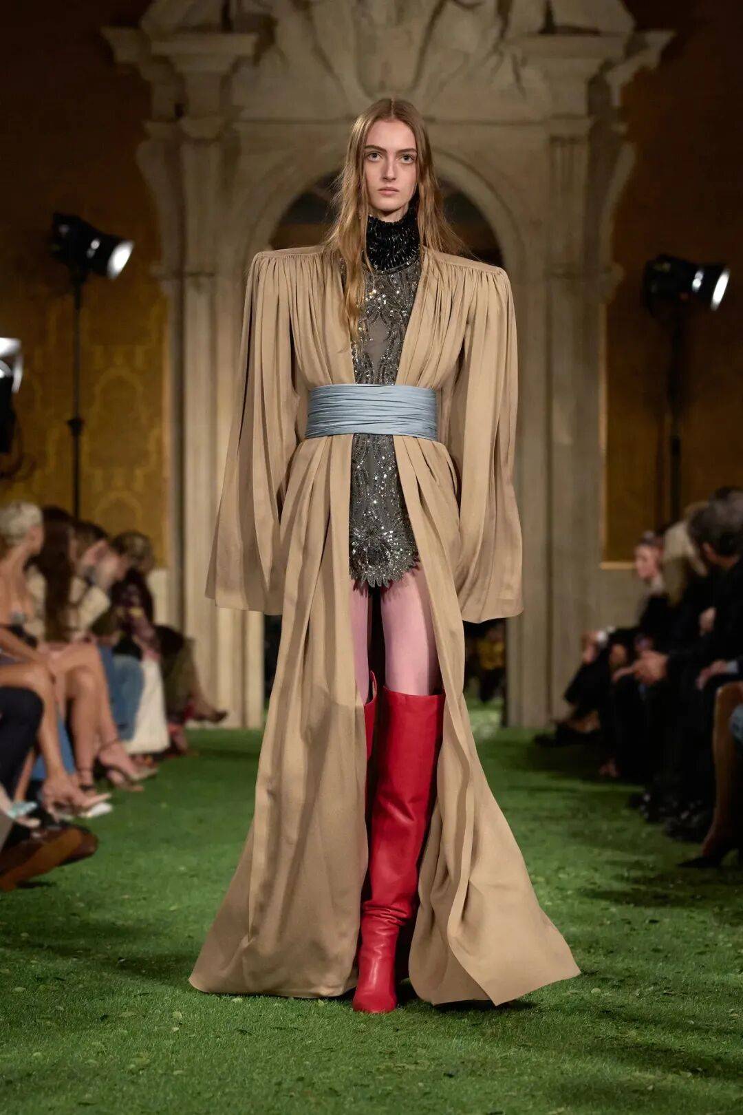 选择巴贝里尼宫作为秀场,本身就蕴含着丰富的象征意义。这座建筑内部,贝尼尼设计的几何秩序阶梯与波洛米尼的螺旋迷失楼梯形成鲜明对比,恰如Michele所追求的“阿波罗式原则与狄俄尼索斯式冲动的交锋”。秀场空间成为尼采哲学中对立力量共生关系的实体映射,而时装系列则成为这场建筑辩证法的织物版本。