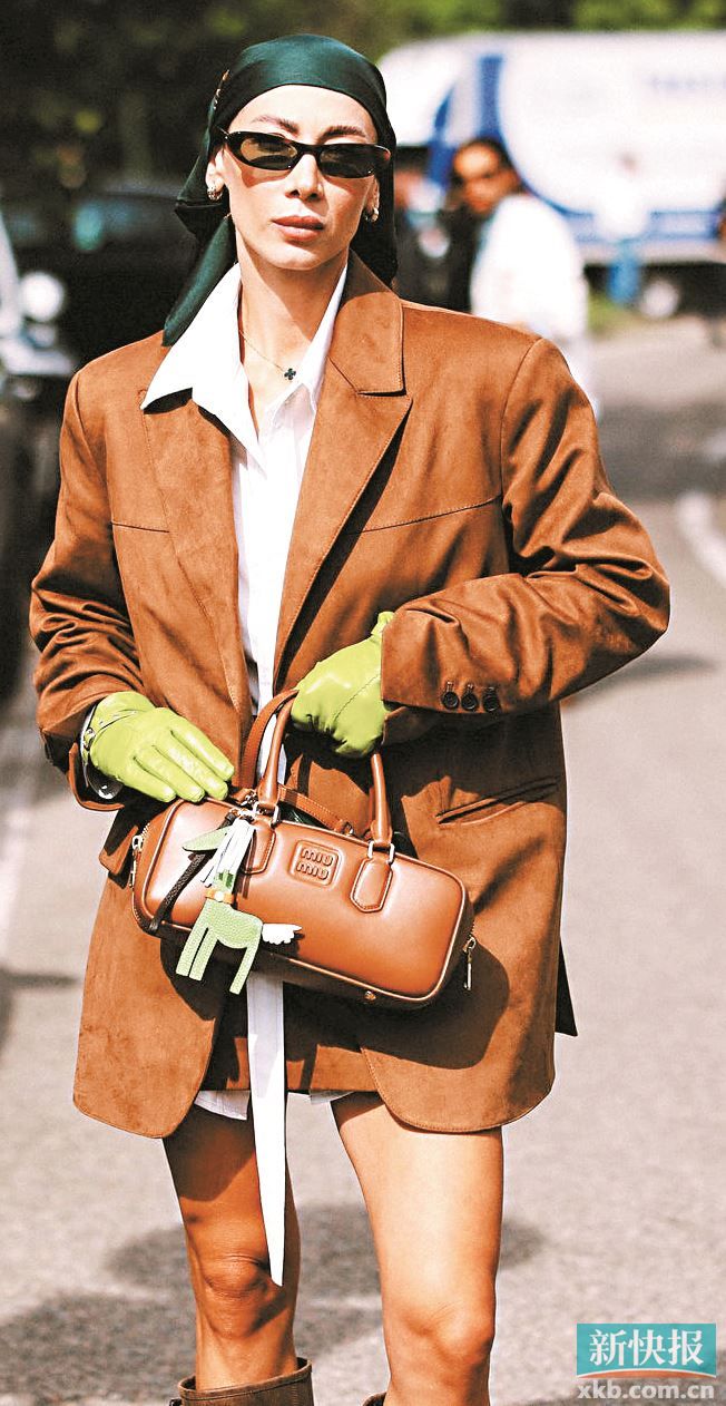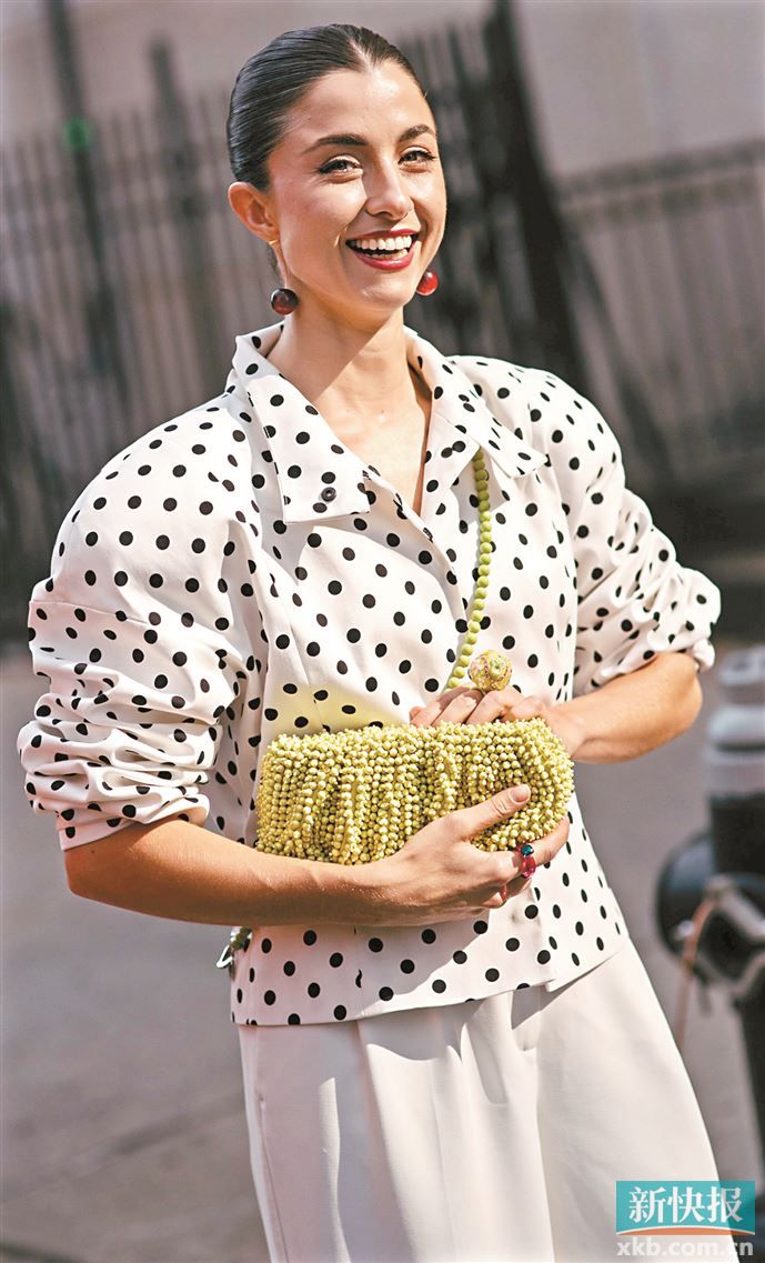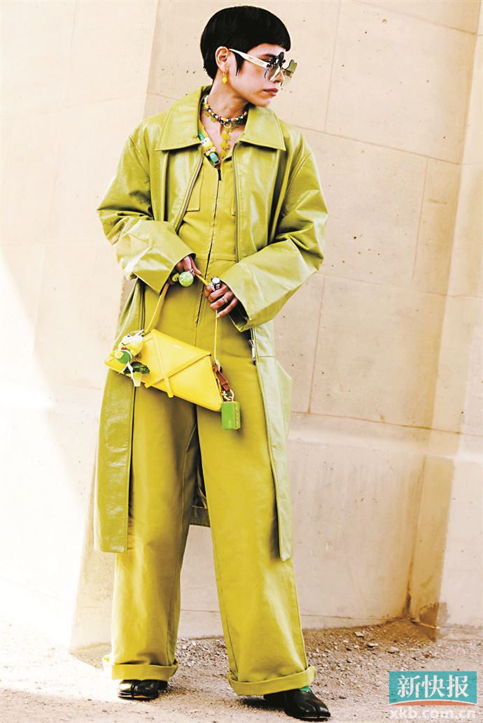 担心大面积嫩芽绿不好驾驭,小面积嫩芽绿点缀便成为让造型出彩的至佳选择。重点是要放在色彩张力上,选款式简约、避免过于繁复的单品,否则会显杂乱,影响整体造型的美感。