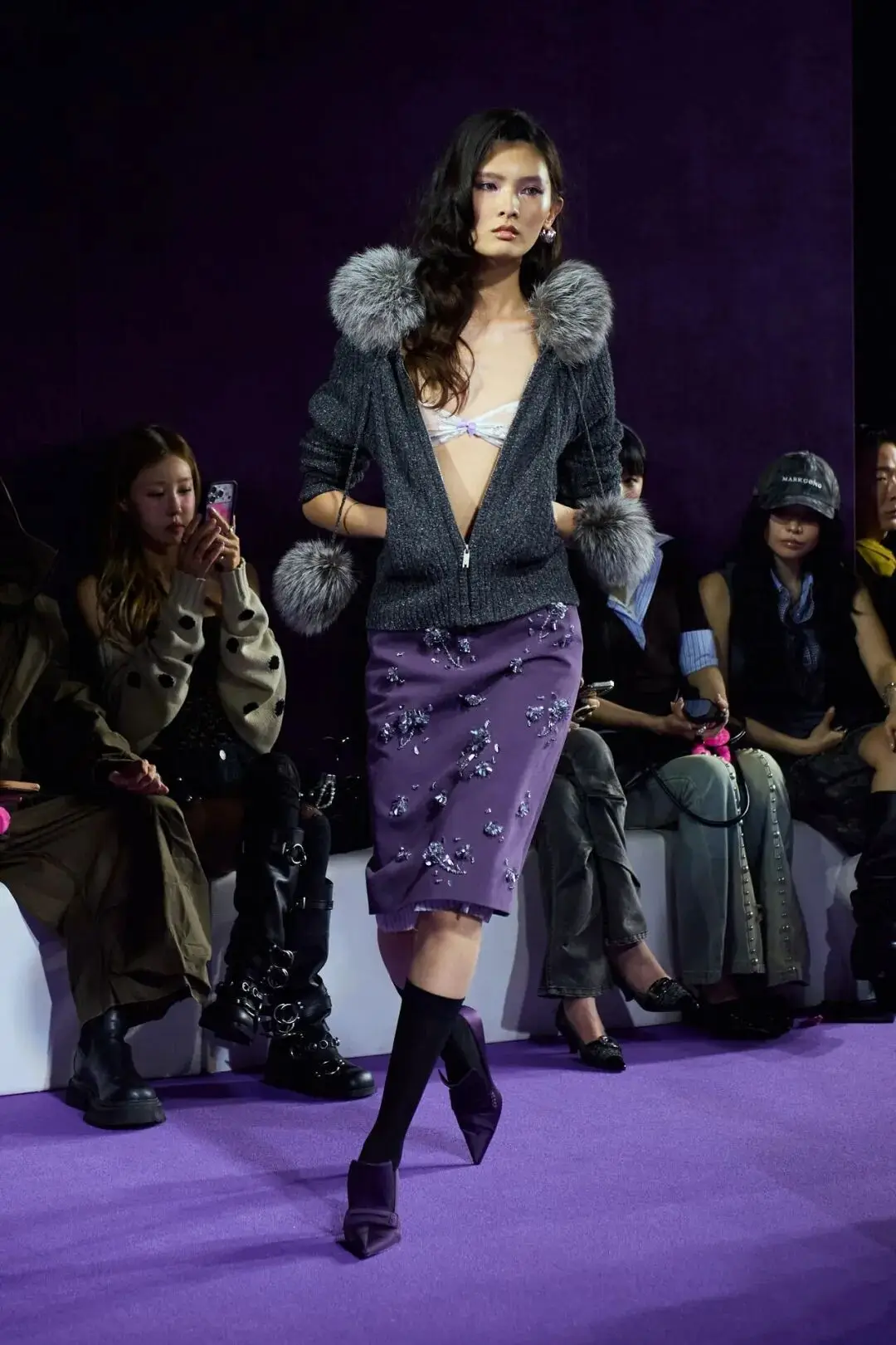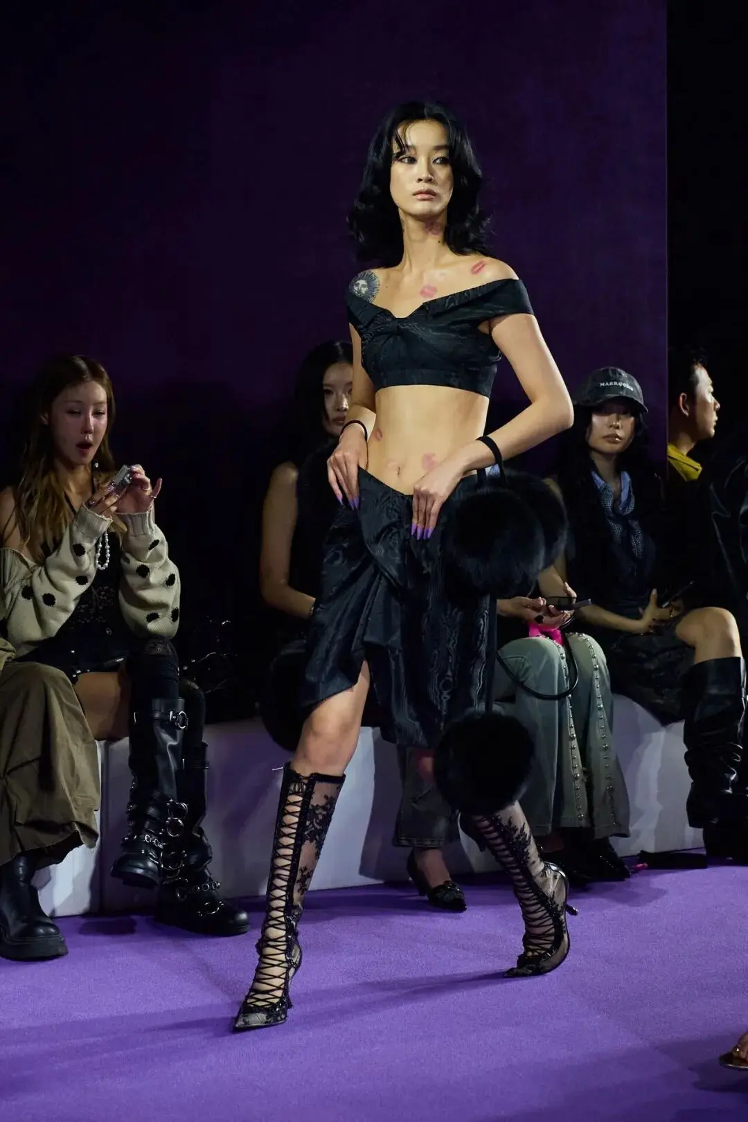 本季秀场以一座由紫色丝绒构筑的迷宫为场景——私密、诱惑,如同女性内心世界的复杂与纠缠。在上海时装周的紫色丝绒迷宫里,MARKGONG 2026秋冬系列以「ALMOST, BABY」为序,写下当代女性最坦诚的欲望独白。