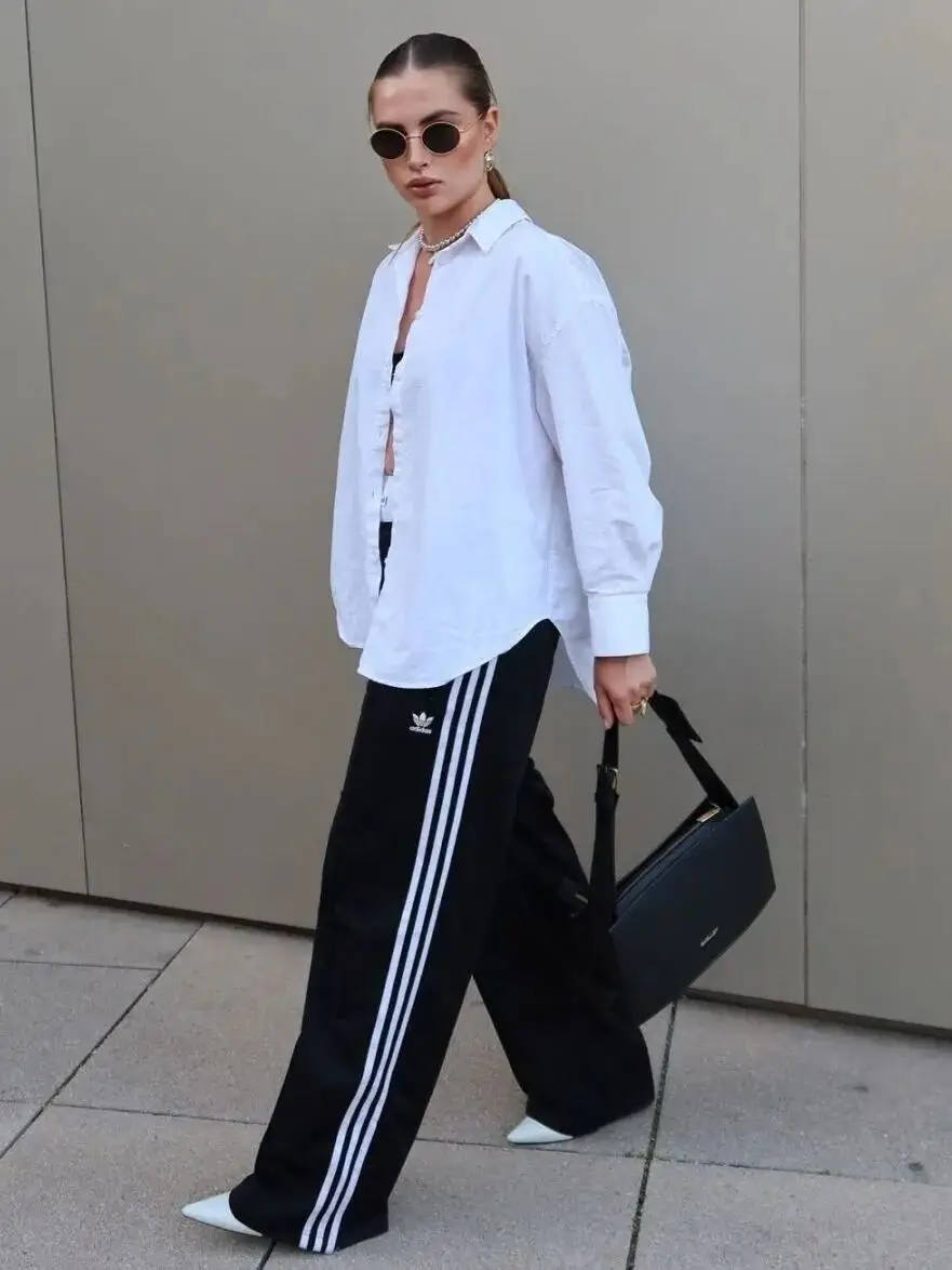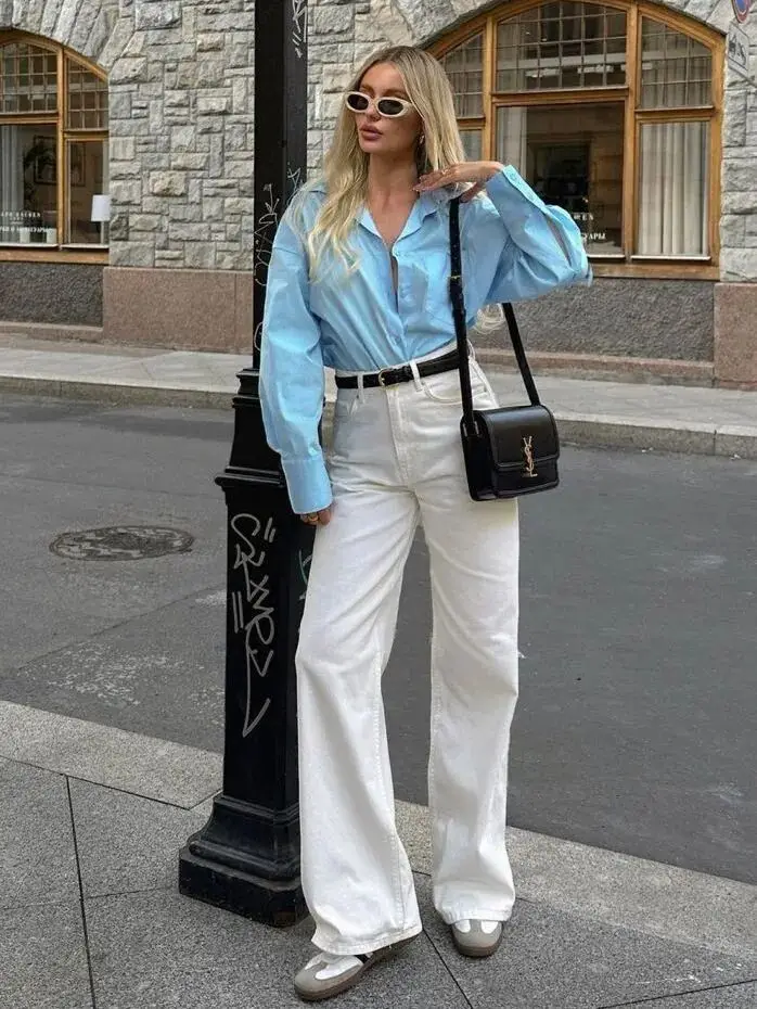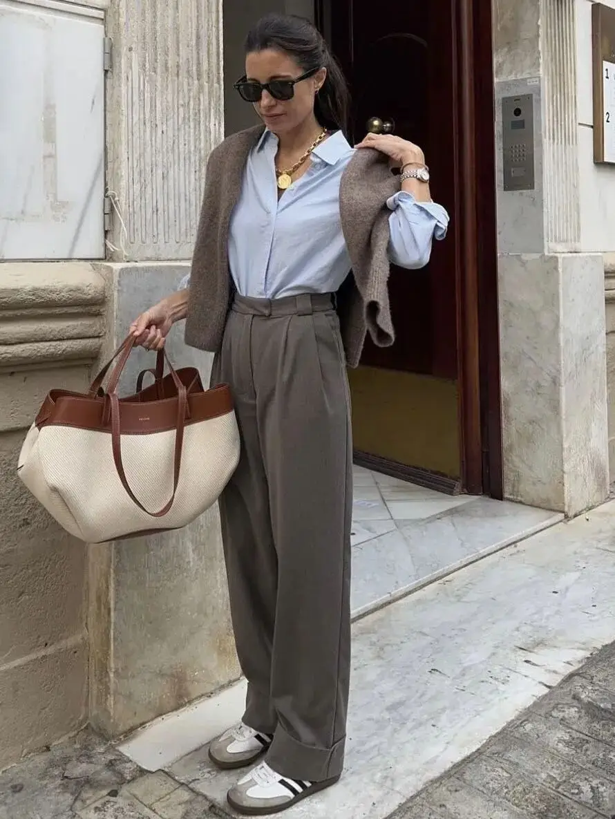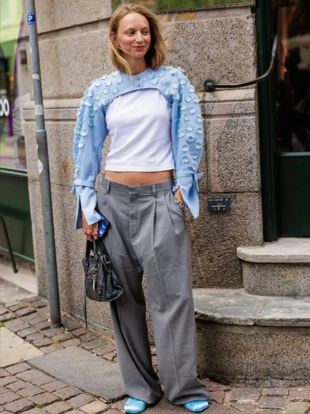 与阔腿裤搭配,既能驾驭日常的休闲风,也能融入职场,打造舒服得体的通勤风。