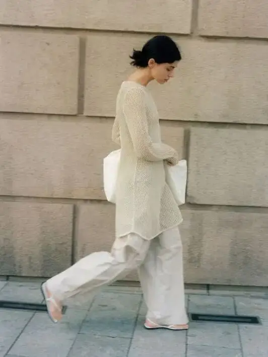 随着The Row等品牌推出极简风格的人字拖,它又成功与“Quiet Luxury(静奢风)”挂钩,搭配阔腿裤,展示了极强的可塑性和高级感。