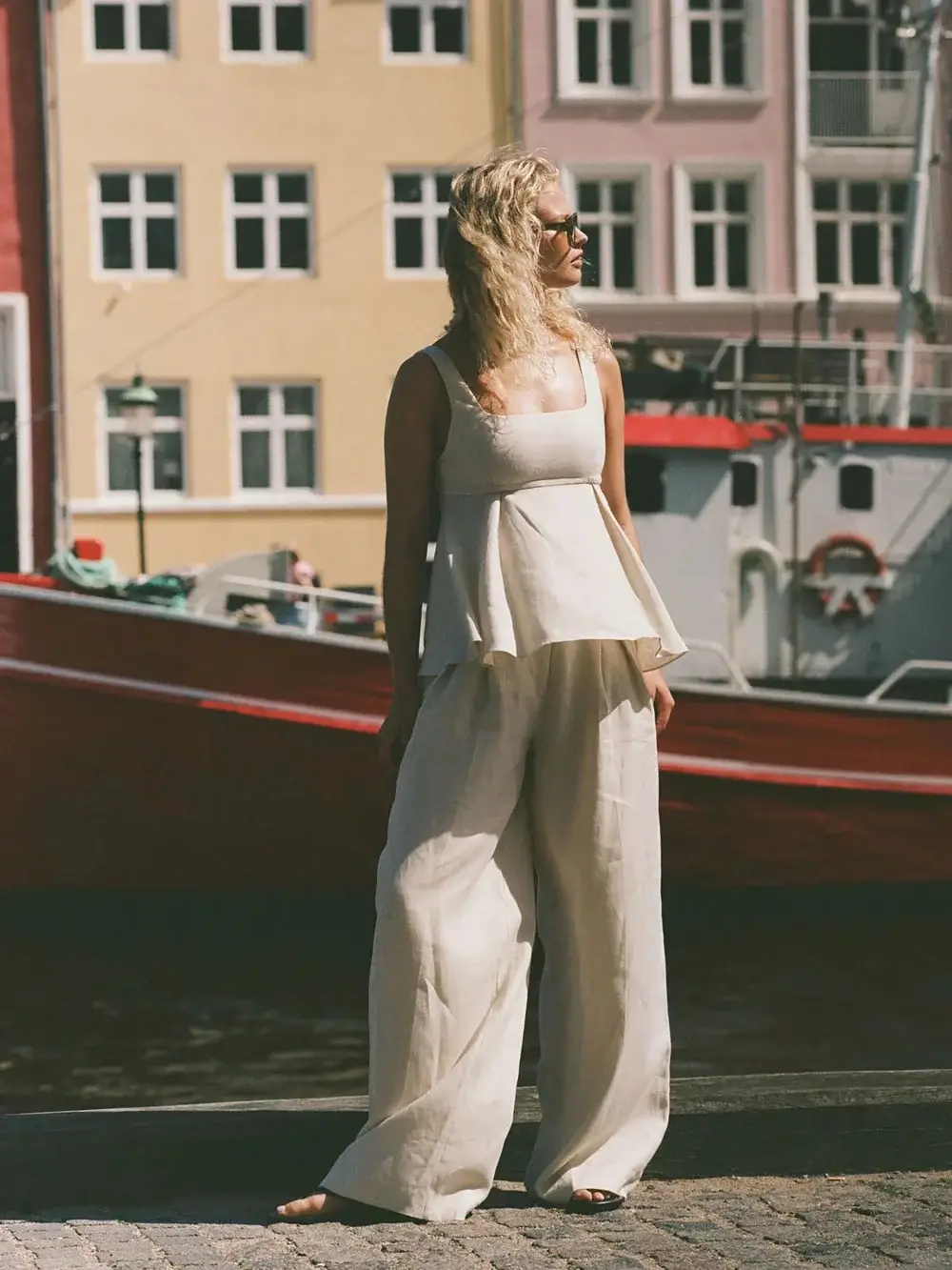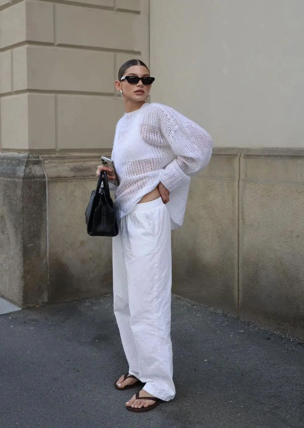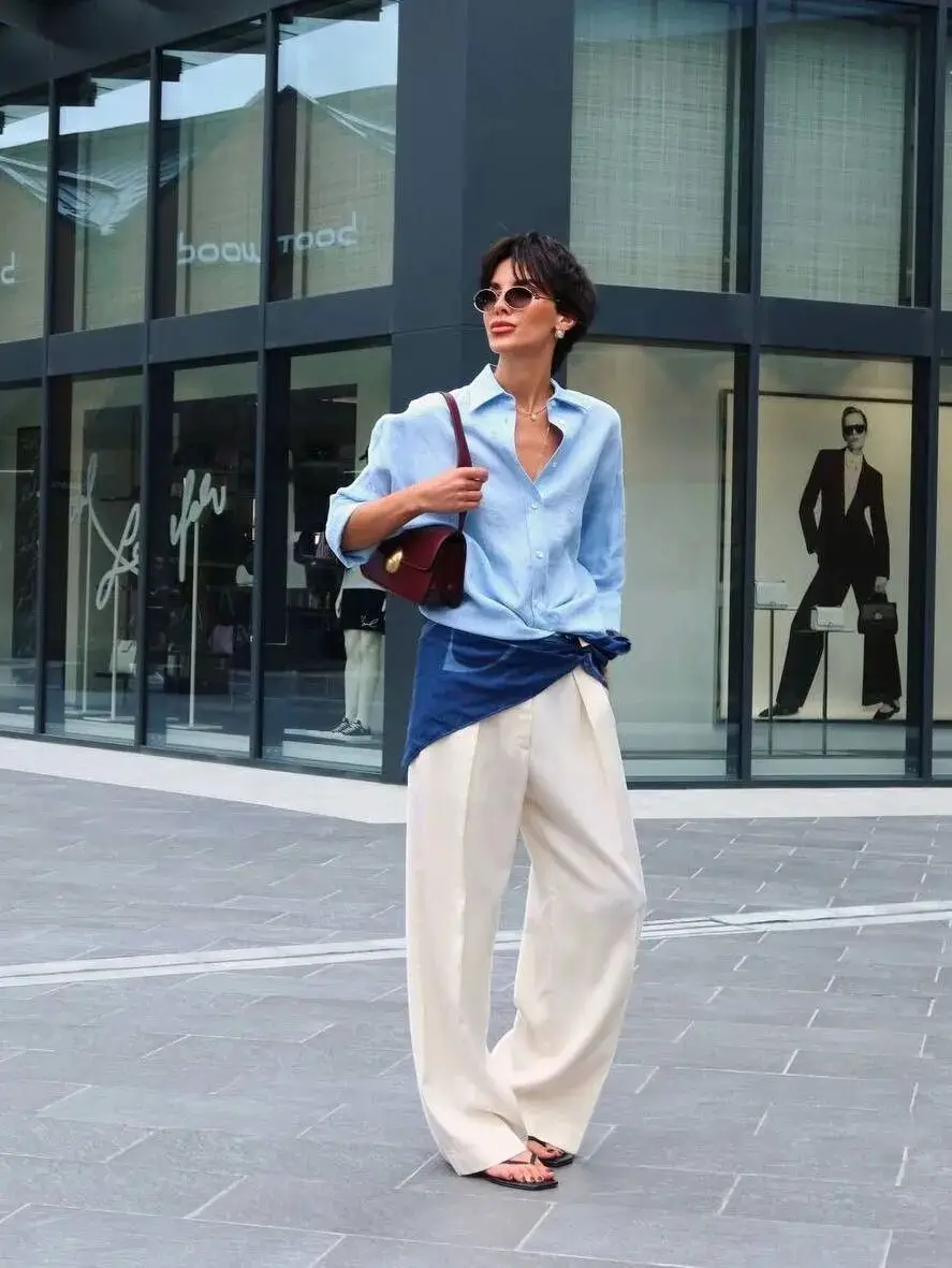 当然,今年也很流行丰富的叠穿,走在城市的街头或度假的氛围,为阔腿裤配人字拖带来更惬意的状态。