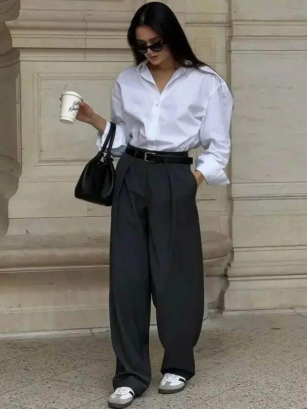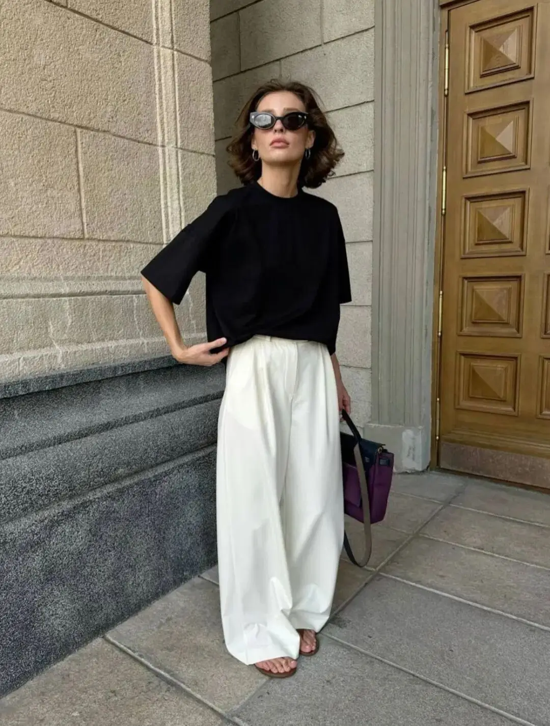 轻盈、简约、清爽,小白鞋几乎能与所有颜色、材质的阔腿裤无缝融合,支撑起从极简到休闲的各种风格,是衣橱里“永不下线的万能搭子”。