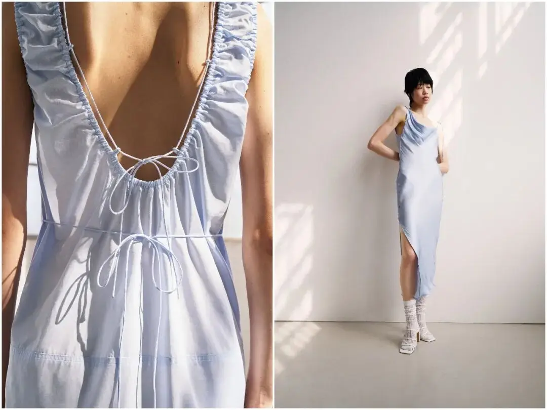 柔美元素的加入,让本系列的刚柔平衡达到了新的高度。垂坠感褶皱、围裹式剪裁、不对称开叉下摆等设计,与硬挺的西装面料形成巧妙碰撞,露肤度的处理克制而高级,仅以小面积露腰、露肩设计展现女性特质,完全规避了过度性感带来的廉价感。
