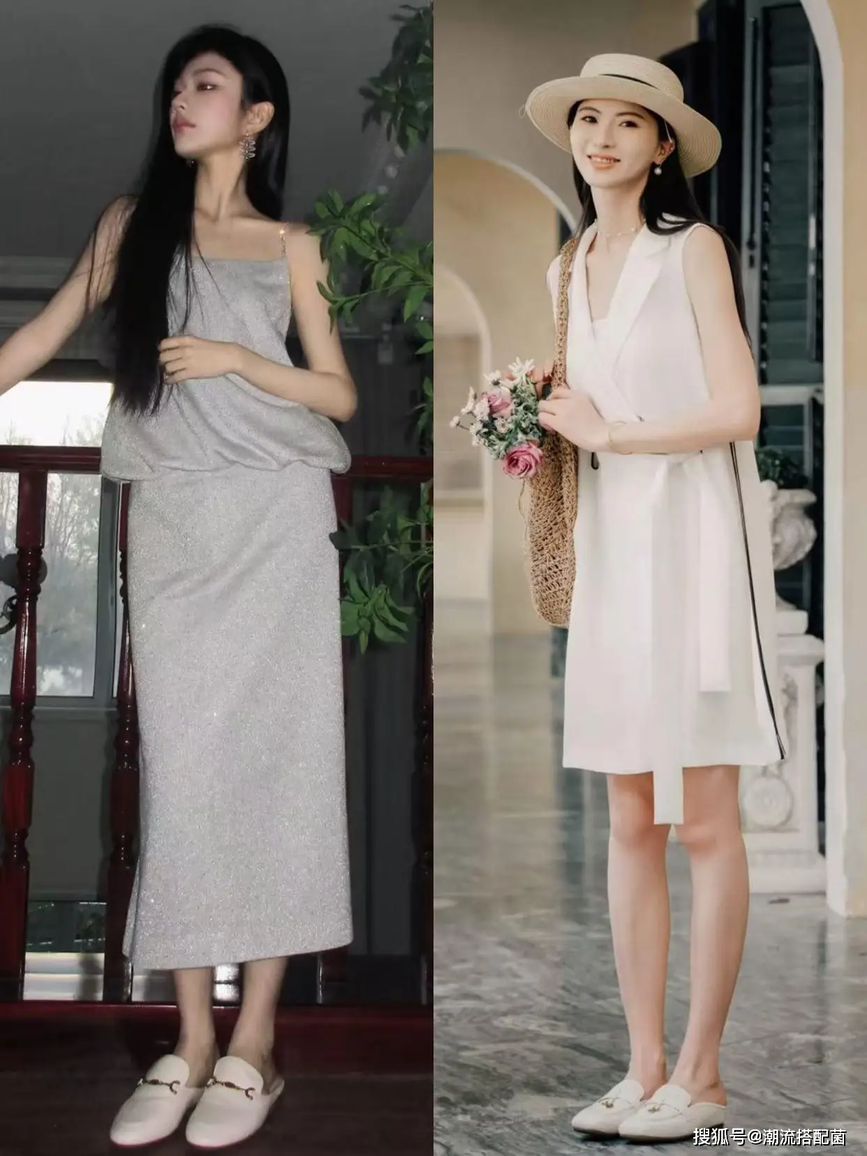 春夏季节我们选择穆勒鞋配裙子虽然看起来是最常见的基础款穿搭,但是想要将这两种优雅精致的单品相互关联起来的话,我们不仅要注意裙子长度的选择,还要注意穆勒鞋的挑选,如果这些款式都选错的话就很容易拉低整体气质,那么最好的方式就是选择过膝不过踝的长度,这样不仅可以展现出腿部的曲线,同时还能起到增高显瘦的效果。