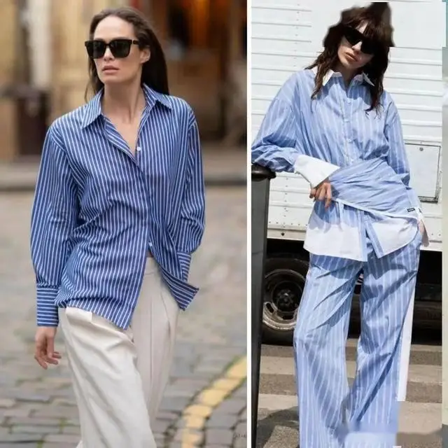 想要无龄感,可以试试条纹衬衫搭配阔腿裤