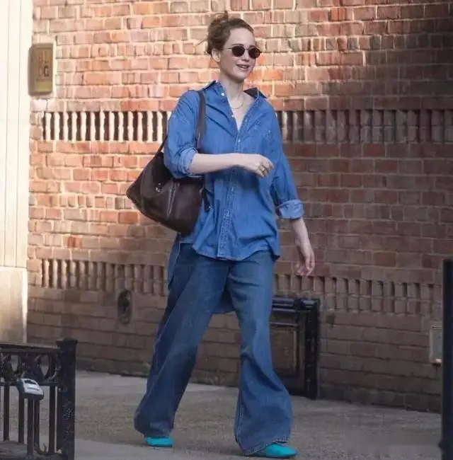 如果是微胖的女生,可以试试薄款的牛仔衬衫,宽松一些更遮肉显瘦,搭配同色系的牛仔阔腿裤,整体营造出视觉顺延感,更显高显瘦了,又可以穿出不费力的时髦。