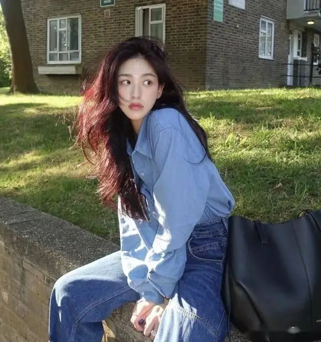 童真蓝色的衬衫,它有一种盐系少年感,配上牛仔阔腿裤,便是很小清新的样子,显白又减龄。