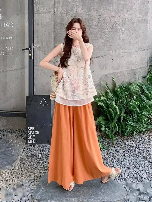 想要减龄,可以试试彩色衬衫搭配阔腿裤