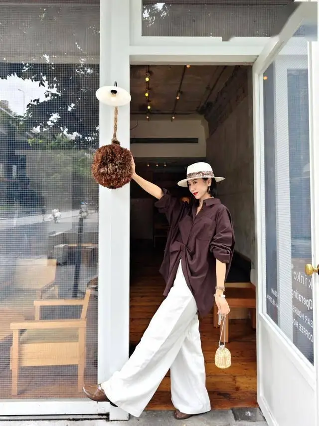 如果你是职场女生,既要穿出精英感,又不想太过刻板,那么宽松的白衬衫搭配阔腿裤,会完美彰显出你优雅大气的魅力,同时又很去班味。