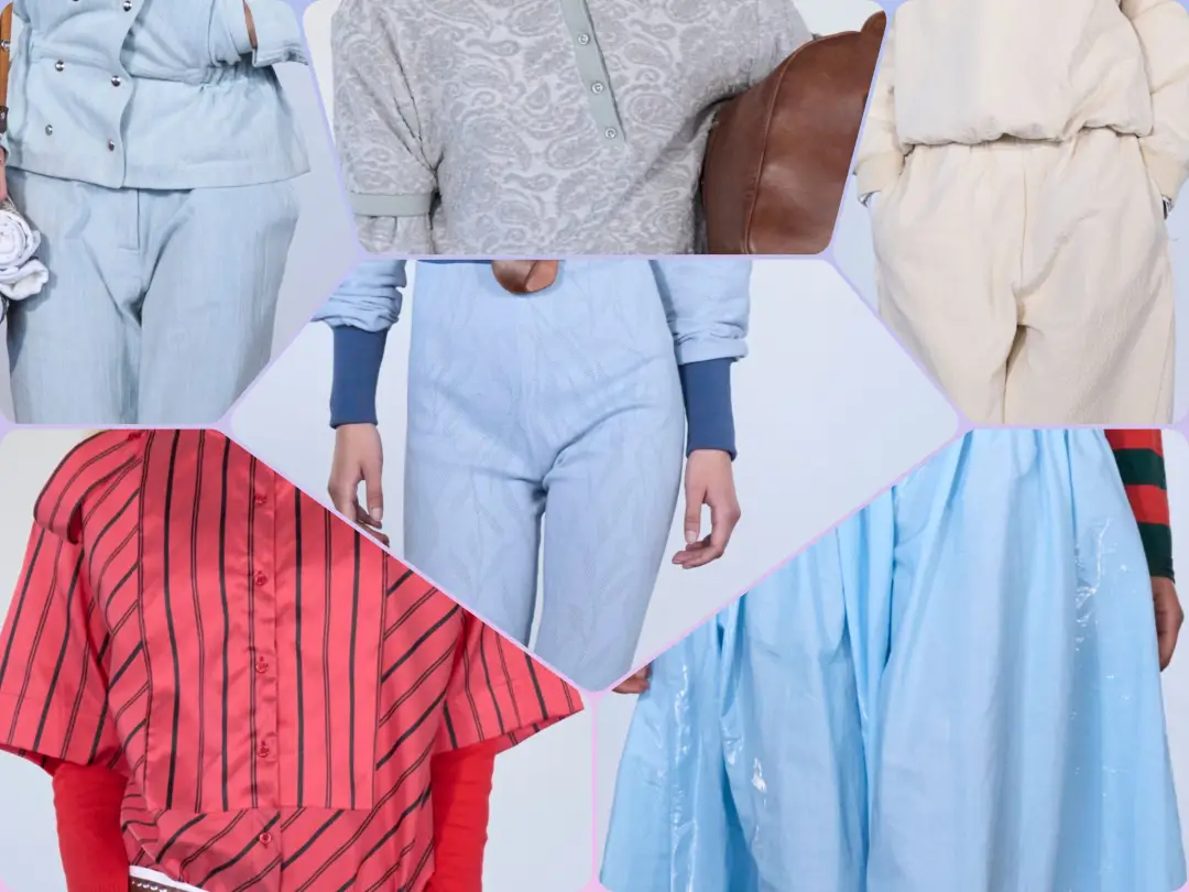 材质是本季最大亮点,堪称面料本位主义的胜利。天然棉麻、轻透欧根纱、柔滑真丝、挺括羊毛、细腻皮革,每一种面料都保留原生肌理,不做过度处理,触感亲肤,视觉干净,让面料本身成为设计语言。