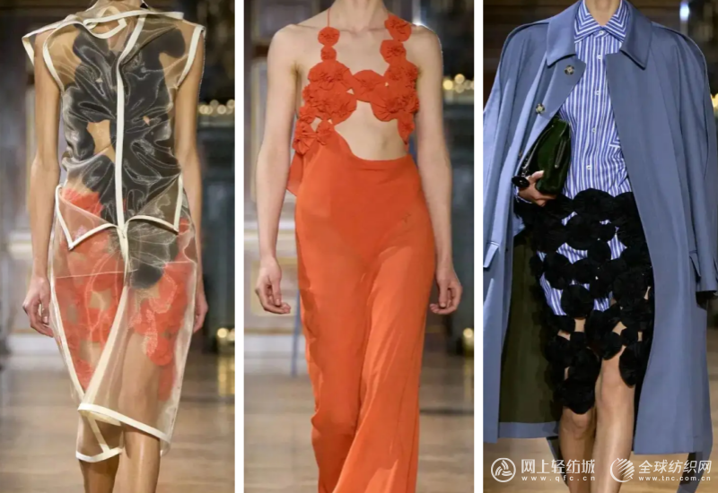 艺术跨界赋能设计,成为本季秀场的鲜明趋势。维多利亚·贝克汉姆本季灵感源自装饰艺术大师塔玛拉·德·兰皮卡的作品,将画家笔下女性的优雅姿态与风格化表达融入服装创作,把身体视作画布,穿衣当作肖像塑造过程。这种艺术借鉴并非简单复刻,而是转化为具体的设计语言:立体主义风格的拼接工艺、斜裁礼服的飘逸线条,甚至呼应画家名作《绿衣少妇》的绿色雪纺单品,都体现了艺术与时尚的深度共生,这也与本季高端时尚“手作与根源”的主轴不谋而合,让服装成为承载艺术美学的载体。