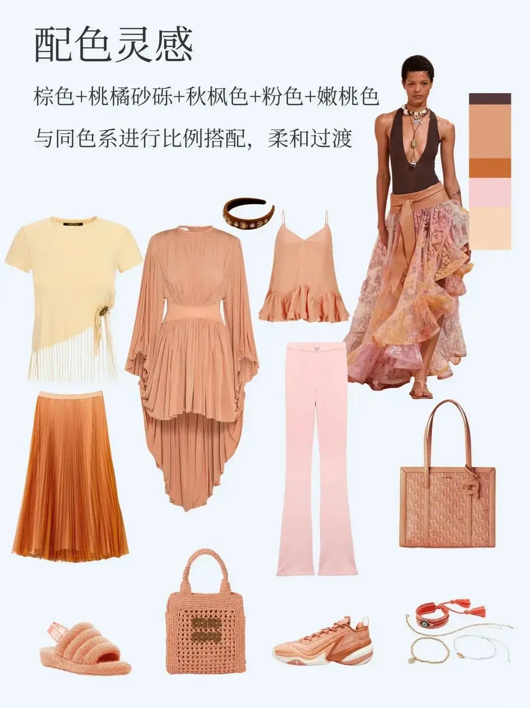 接近裸色的暖橘调,带着温柔感与淡橘的活力,又不过于甜腻,给人亲切、舒适的视觉感受,实用又百搭,轻盈而不失稳重。