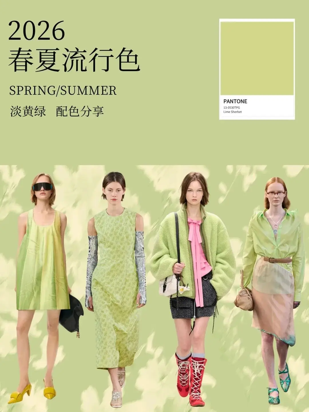 清嫩柔润的浅绿调适配多种春夏场景,自带专属的轻盈降温质感,可衍生出丰富的款式,涵盖连衣裙、衬衫、宽松廓形夹克等单品。