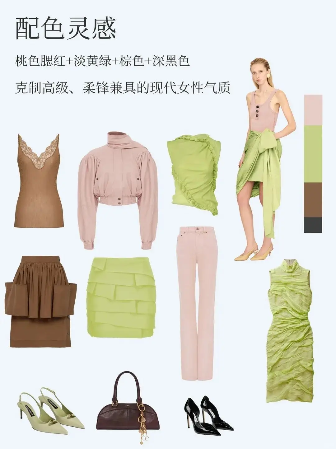 这个颜色适用于多种单品设计:柔美飘逸的系带衬衫,修身精致的连衣裙,松弛休闲外套等,适配摩登智感通勤、活力出街、轻度假等穿搭场景。