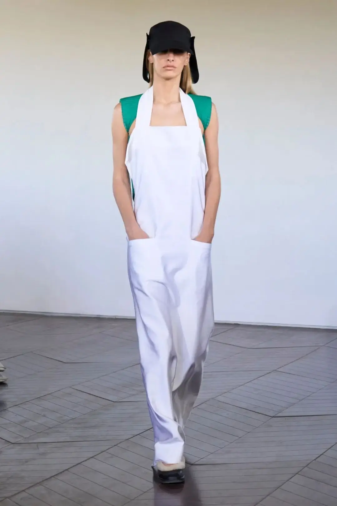 Wallpaper*:"模块化西装与围裙式连衣裙的组合,为职场女性提供了正式与休闲之间的平衡选择,展现出当代女性的多面性。"