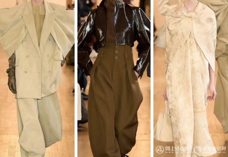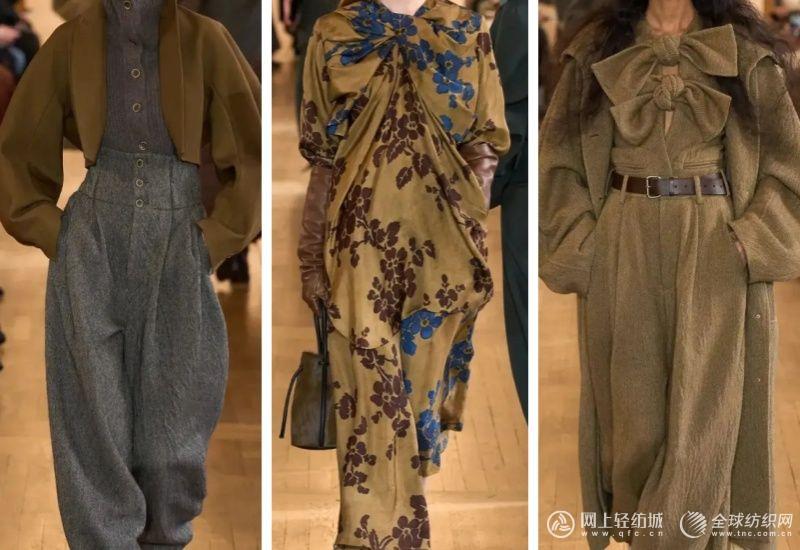 面料与工艺层面,质感至上成为秋冬主流趋势,重磅羊毛、天然亚麻、创新提花材质混搭,做旧肌理与奢华面料碰撞,尽显高端成衣质感;色彩上以低饱和大地色为基底,搭配复古酒红点缀,契合当下低调奢华的时尚审美,辅以文艺复古细节与仪式感配饰,全方位定义秋冬时尚新风向。